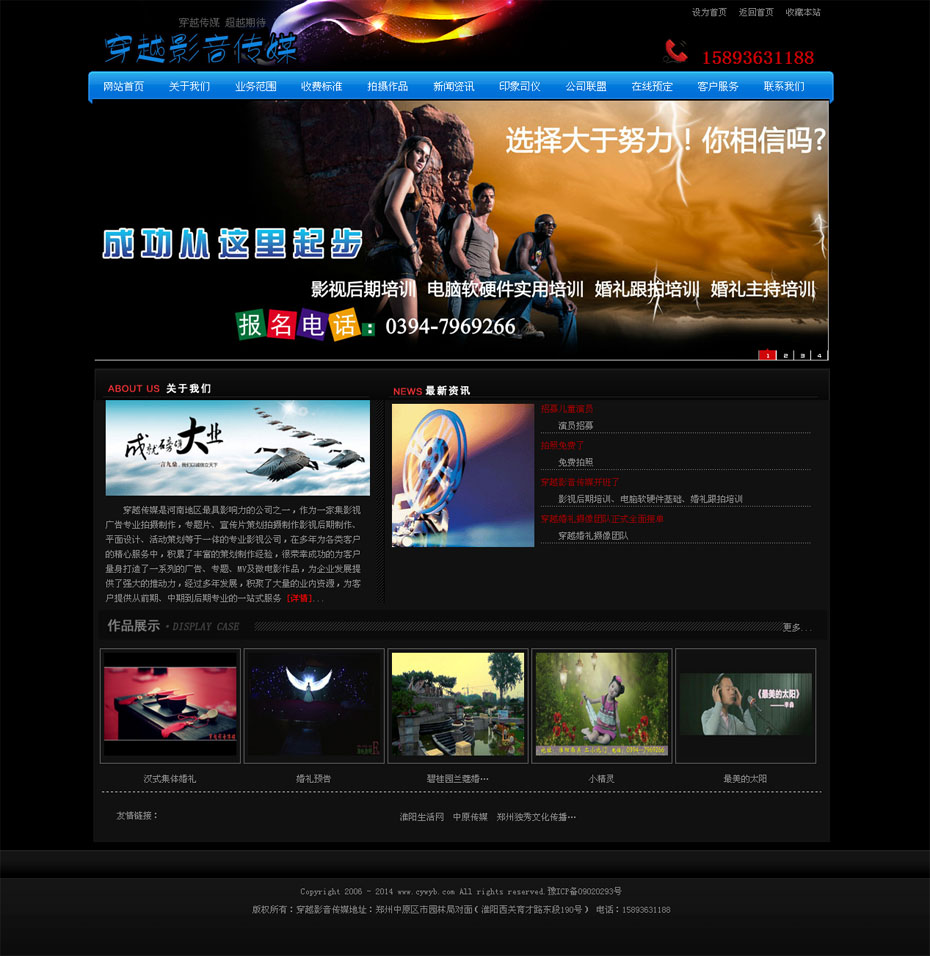 案例介紹:穿越影音傳媒機構2011年在北京成立,2013年在河南成立分支機構。是從事音樂MV錄制、婚紗微電影、寫真微電影、兒童微電影、企業(yè)宣傳片廣告片拍攝 、專業(yè)錄音以及后期制作的專業(yè)影視公司,擁有微電影事業(yè)部、婚慶策劃事業(yè)部、網(wǎng)站建設與推廣事業(yè)部、后期技術團隊、高 級 彩 妝 團隊、等一線部門,擁有專業(yè)虛擬演播室,集專業(yè)音頻采集、高清視頻、實時合成影音、多機位取景等技術于一身,擁有專業(yè)影視制作團隊。